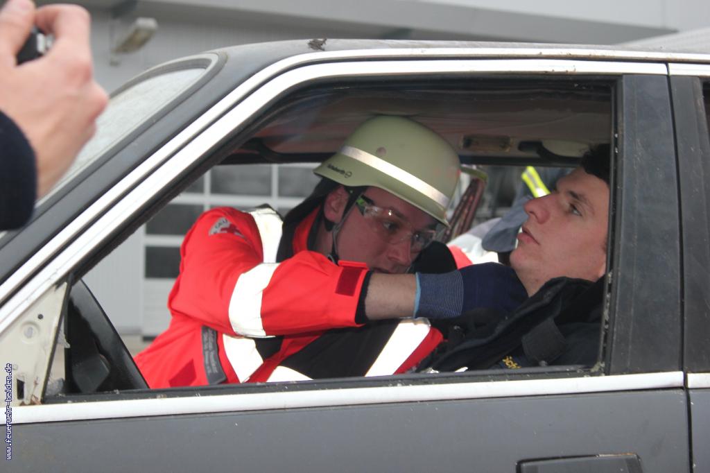 Zusammen mit dem Deutschen Roten Kreuz haben wir zur Übung einen PKW Unfall mit einer eingeklemmten Person durchgeführt. Hierzu haben wir unsere Arbeitsvorgänge beim Sichern des Fahrzeuges, wie auch bei der Personenbefreiung erklärt, wieso solche Maßnahmen überhaupt entschieden werden.