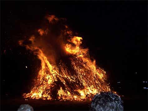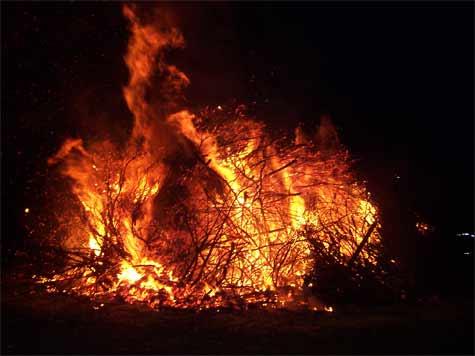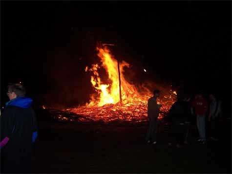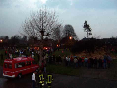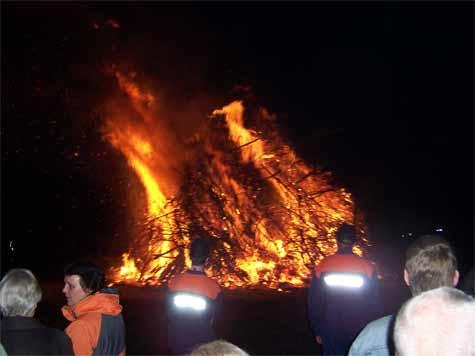 Nachdem wir unsere Fakeln an der Flamme der Osterkerze entzündet haben, marschierten wir zusammen mit der Musikkapelle in Richtung Kirmesplatz. Hierbei liefen zum ersten mal auch unsere Kameraden der Jugendfeuerwehr mit. Nach einer kurzen Ansprache des Heimatvereins entzündeten wir dann vor den zahlreichen Heidenern, die der Tradition beiwohnten, das Osterfeuer.
