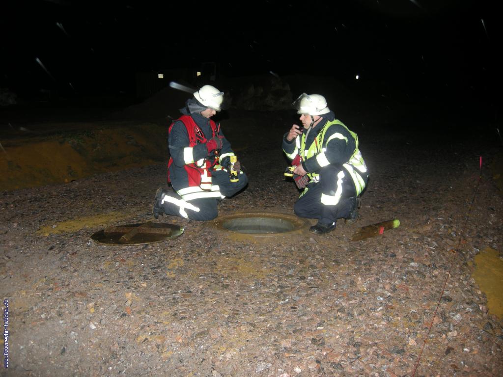 Bei dieser Übung wurde eine vermisste Person angenommen. Beim Eintreffen musste ein größeres Areal abgesucht werden, einschließlich eines Kanalisationsbereiches. Dieser wurde mit 3 Trupps unter schwerem Atemschutz durchsucht. Die umliegenden Felder und Straßen suchten mit weiteren Einsatzkräften nach der vermissten Person.