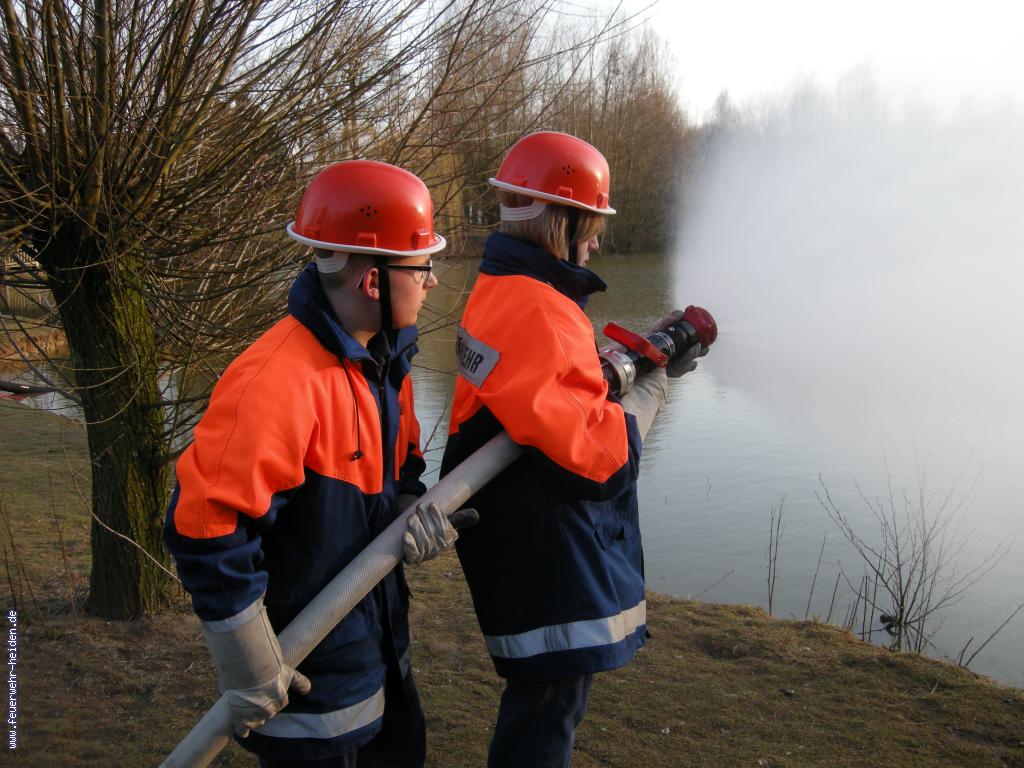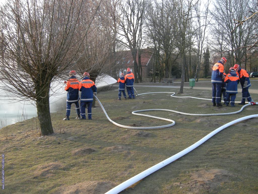 Mit 3 C- Rohren führten wir die Übung durch und entnahmen dazu das Löschwasser aus dem Biotop.