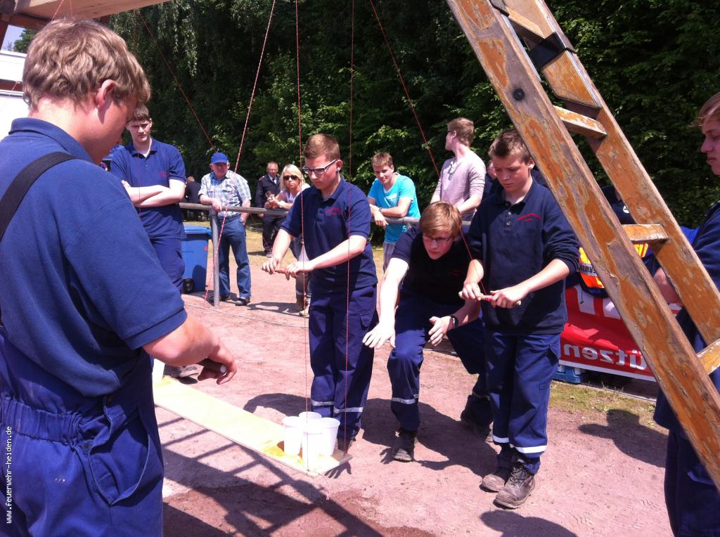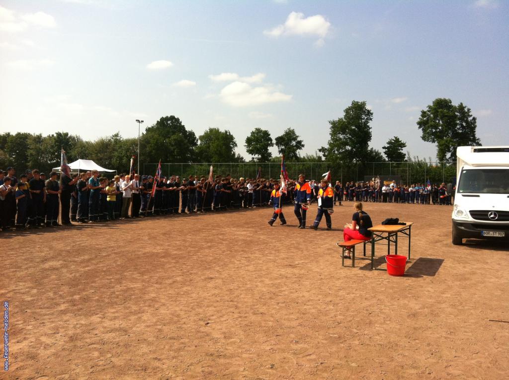 Nach der Eröffnungsrede von dem Kreis-Jugendfeuerwehrwart Ralf Gottlob, Kreisbrandmeister Johannes Thesing und dem Bürgermeister Christian Vedder starteten wir mit dem eigentlichen Wettkampf.