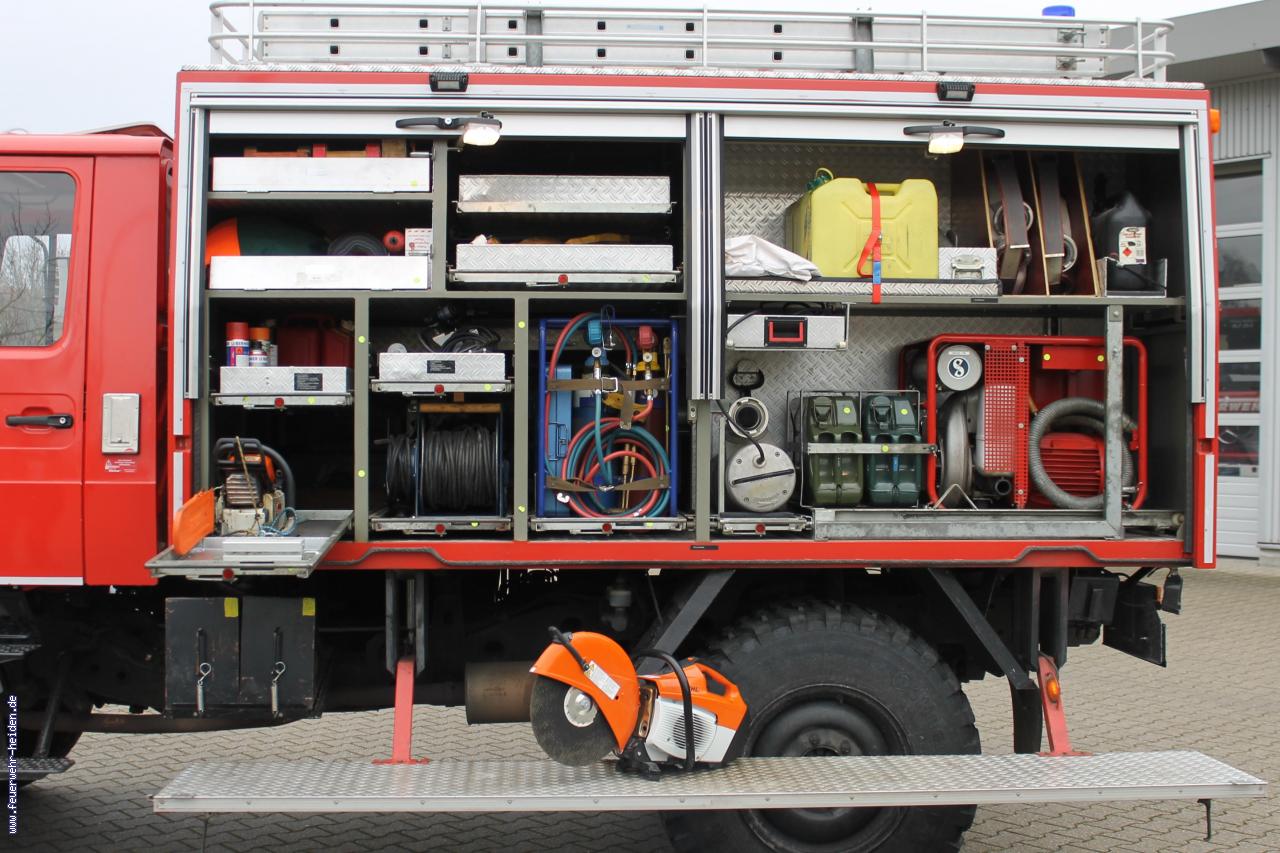Die Aufgaben des Rüstwagens liegen primär im Bereich der technischen Hilfeleistung. Er dient zum Beispiel zur Abwicklung von Sturm- und Wasserschäden oder auch Verkehrsunfällen. Dafür sind diverse motorbetriebene Arbeitsgeräte, wie Kettensägen oder ein Trennschleifer verlastet. Zudem ist das Fahrzeug mit einer maschinellen Zugeinrichtung und einem Mehrzweckzug ausgestattet. Zur Ausrüstung zählen auch Materialien zum Unterbauen, Sichern und Anheben von Lasten.