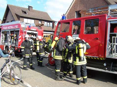 In einem Wohnhaus am Kreuzweg ist es bei Renovierungsarbeiten im Keller bei der Heizung zu einer Verpuffung gekommen. Bei unserem Eintreffen war klar, dass sich der Heizungsmonteur noch im Keller befand. Eine zweite Person stand im zweiten Stock am Fenster und machte auf sich aufmerksam. Ein Angriffstrupp ging zur Rettung des Monteuers unter schwerem Atemschutz vor. Die zweite Person wurde über eine angestellte Leiter evakuiert. Ein Trupp durchsuchte noch die Wohnung nach weiteren Personen. Weiterhin wurden zur Brandbekämpfung mehrere C-Rohre eingesetzt.