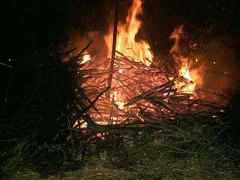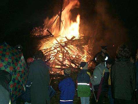 Hierzu trafen sich die Kameraden der Wehr um 20:00 Uhr an der Kirche St. Georg um die Fackeln an der Osterkerze zu entzünden. Anschließend wurde mit Begleitung der Musikkapelle der Marsch Richtung Festwiese in Gang gesetzt. Nach einleitenden Worten des Heimatvereins wurde das Feuer entzündet.Trotz wiedriger Wetterumstände an diesem und den vorhergegangen Tagen, war das Osterfeuer dennoch gut besucht.