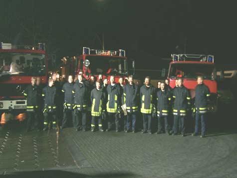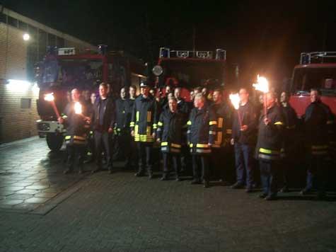 Mit Blaulicht und Martinshorn rückte die Freiwillige Feuerwehr zu einem besonderen Einsatz aus. Mit vier Wagen und der kompletten Mannschaft sah es nach einem Großeinsatz aus. Wer dann noch sah, dass eine Tankstelle Ziel der Truppe war, der ahnte Böses. Doch weit gefehlt. Denn die Kameraden holten ihren Kollegen Hermann Klöpper zum letzten Einsatz ab. Seit 38 Jahren versieht der „schnellste Opa aus Heiden“ seinen Dienst bei der Heidener Wehr. Doch mit dem 60. Lebensjahr ist auch für den Goldjungen – Klöpper war mit bei der Feuerwehrolympiade in Finnland – Schluss. „Das ist die Altersgrenze bei der Feuerwehr“, erklärte Gemeindebrandinspektor Johannes Thesing. Mit einem dreifachen „Gut Schlauch“ dankten die Mitglieder der Feuerwehr ihrem Mitglied für dessen engagierten Einsatz. Doch ehe Klöpper, der in wenigen Tagen 60 Jahre alt wird, den verdienten Feuerwehrruhestand genießen konnte, musste er ein weiteres Mal in den roten Wagen klettern. Der brachte ihn zu seinem letzten Dienst ins Gerätehaus: Dort fand eine Schulung zum neuen Verkehrsrecht statt. „In den 60-er Jahren fehlten der Feuerwehr Fahrer, die mit dem Führerschein der Klasse zwei Tankwagen steuern konnten“, antwortete Klöpper auf die Fragen, wie er zur Feuerwehr kam. Der damalige Wehrführer Rolf Baltruschat habe ihn gewonnen. „Klöppers Fertigkeiten und Wissen als Kfz-Meister kamen der ganzen Mannschaft zugute“, lobt der heutige Wehrführer Thesing. Er sei Tag und Nacht zur Stelle gewesen, ob man nun Kraftstoffe gebraucht oder es technische Probleme gegeben habe. Der Mann, der nun Mitglied der Altersabteilung wird, hat in vielen Notsituationen geholfen. Natürlich hat er noch Bilder vor Augen, als Gehöfte in Flammen aufgingen, Menschen und Tiere gerettet werden mussten. An vorderster Stelle war er im Einsatz, als im Ortskern zwei Busse zusammenstießen, und der eingeklemmte Fahrer geborgen werden musste. Besonders schätz Klöpper den Kameradschaftsgeist. Deshalb scheidet er mit Wehmut als Aktiver aus.