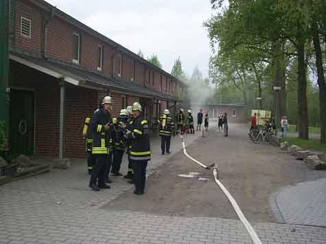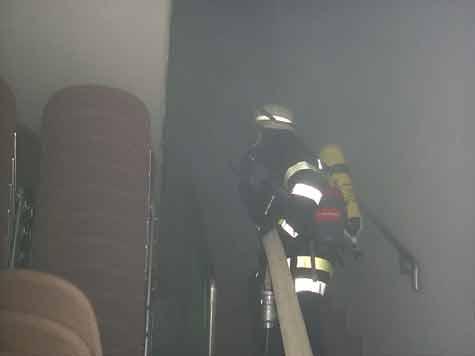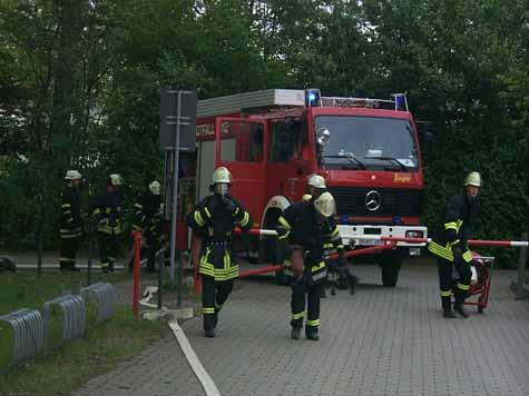 Bei Arbeiten im Bereich der Bühne der Mehrzweckhalle ist ein Feuer ausgebrochen. Ein Arbeiter wird vermisst. Das war das Übungsszenario, das Brandinspektor Carsten Lohaus und Brandmeister Dieter Wanders entwickelt hatten und ihren Kameraden zum Lösen aufgaben. Die Manöverkritik fiel absolut positiv aus: Die Übung hatte wie am Schnürchen geklappt.