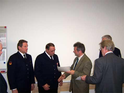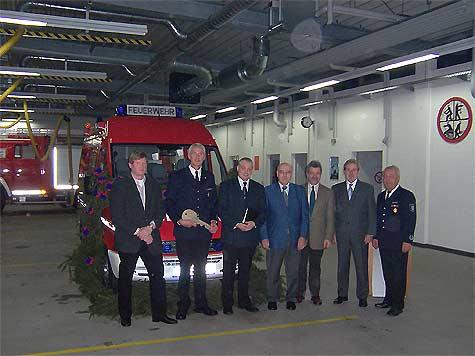 55.000 Euro kostet der Einsatzleitwagen, dessen Ausstattung auf die Schwerpunkte des gemeindlichen Aufgabengebietes ausgerichtet wurde. "Der neue ELW 1 dient vorwiegend der Einsatzleitung und der dazu notwendigen Mannschaft, sowie der Erkundung von Einsatzstellen und als Hilfs- und Steuerungsmittel zur Führung von taktischen Einheiten", so Gemeindebrandinspektor Johannes Thesing, der sich bei allen Beteiligten, die einen Beitrag zur Beschaffung des Fahrzeuges geleistet haben, bedankte. Die Einsegnung übernahmen Pfarrer Ralf Jung von der evangelischen Gemeinde und Diakon Hermann Sühling von der katholischen Pfarrgemeinde.