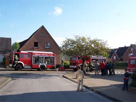 In einem Wohnhaus am Kreuzweg ist es bei Renovierungsarbeiten im Keller bei der Heizung zu einer Verpuffung gekommen. Bei unserem Eintreffen war klar, dass sich der Heizungsmonteur noch im Keller befand. Eine zweite Person stand im zweiten Stock am Fenster und machte auf sich aufmerksam. Ein Angriffstrupp ging zur Rettung des Monteuers unter schwerem Atemschutz vor. Die zweite Person wurde über eine angestellte Leiter evakuiert. Ein Trupp durchsuchte noch die Wohnung nach weiteren Personen. Weiterhin wurden zur Brandbekämpfung mehrere C-Rohre eingesetzt.