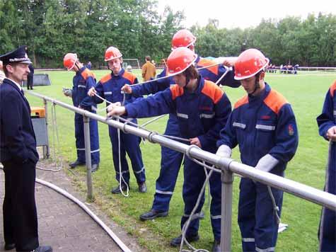 Die vielen Übungen, die unser Kameraden der Jugendfeuerwehr in den vergangenen Wochen geleistet haben, zahlten sich nun endlich beim Leistungsnachweis der Jugendfeuerwehren des Kreis Borken aus. Bei diesem jährlichen Ereigniss nahmen wir zum ersten mal teil. Zwei Gruppen sind angetreten, um verschiedene Aufgaben zu bewältigen. So standen ein Löschangriff, ein Hindernissparcours, schriftliche Aufgaben sowie das Wissen um Knoten und Stiche zur Prüfung.