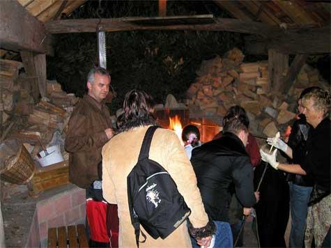 Die Feuerwehr schlug kurzer Hand vor das Biwak in die Fahrzeughalle des Feuerwehrgerätehauses zu verlegen. Dieser Vorschlag wurde von den Erzieherinnen auch dankend angenommen. So wurde mit Vereinten Kräften das Geschehen ins Feuerwehrgerätehaus verlagert. So konnten in der trockenen Halle die Getränke verzehrt werden und auf dem großen Grill doch noch das Brot gebacken werden.