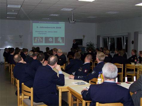 Schneechaos, Vogelgrippe, Schweinepest, Fußballweltmeisterschaft – samt und sonders nicht ad hoc mit Feuerwehr in Zusammenhang zu bringen, dennoch erinnerte Wehrleiter Johannes Thesing bei der Jahreshauptversammlung am Freitag daran, dass die Wehren auch auf solche Ereignisse vorbereitet sein müssten. Konkret waren die Wehrleute im vergangenen Jahr 46 Mal im Einsatz und haben dabei 989 Stunden aufgewendet. 13 Mal rückten die Fahrzeuge zu Bränden aus, 23 Mal Waren Hilfeleistungen gefordert. In diesem Zusammenhang dankte Thesing den Heidener Firmen, die immer noch bereit seien, Feuerwehrleute für Einsätze von der Arbeit freizustellen und die Feuerwehr auch sonst zu Unterstützen. Dies sei keineswegs mehr selbstverständlich.