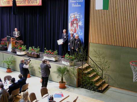 Als Gäste durften wir aus dem Kreise der Politik MdB Pries, MdB Röring, MdL Schemmer sowie Landrat Gerd Wiesmann und Dr. Hermann Passlik vom Kreis Borken begrüßen. Auch die Polizei folgte mit dem Leiter der Polizeiwache Borken Klaus Dörschlag und unserem Bezirksdiensbeamter Achim Pitzen unserer Einladung. Kirchlichen Beistand erhielten wir durch Diakon Hermann Sühling. Natürlich war auch die Feuerwehrschiene mit dem stellv. Bezirksbrandmeister Donald Niehues, KBM Johannes Thesing, KBM a.d. Heinz Tenspolde und dem Vorsitzender des Kreisfeuerwehrverbandes Eckbert Gördes vertreten.