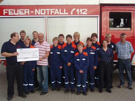 Reinhard Brömmel und Ludger Derijck freuten sich, einen Scheck in Höhe von 358 Euro an unseren Jugendfeuerwehrwart Christian Wiczke überreichen zu können. Diese stolze Summe war der Erlös aus einem Torwandschießen des Fanclubs auf dem Maibökendag. Schon damals hatten sich die Fußballfreunde dazu entschlossen, das eingenommene Geld unserer Jugendfeuerwehr zu spenden.