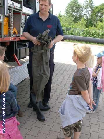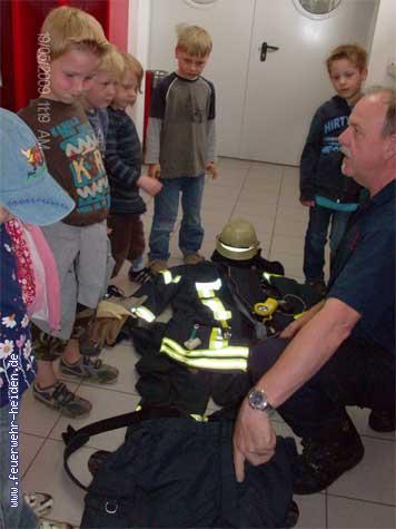 Im Rahmen unserer Brandschutzerziehungsarbeit besuchten uns im Mai Kinder aus dem St. Josef Kindergarten und dem Paulus Kindergarten. Dabei wurde ihnen spielerisch gezeigt, wie die Feuerwehrmänner im Ernstfall arbeiten.