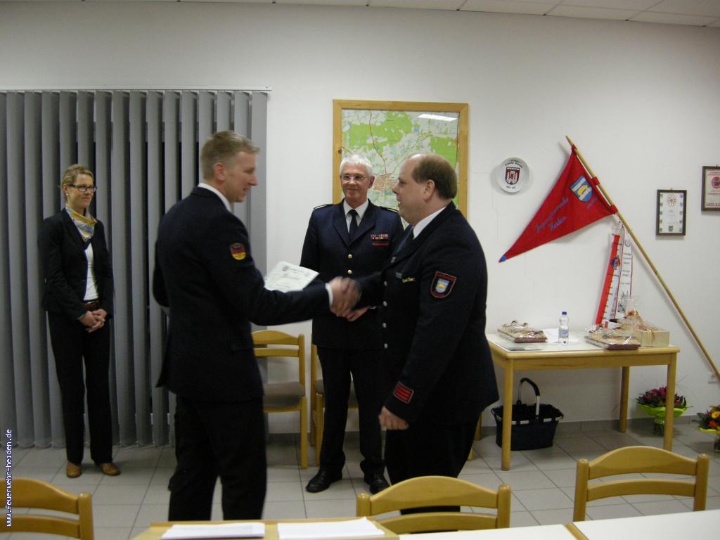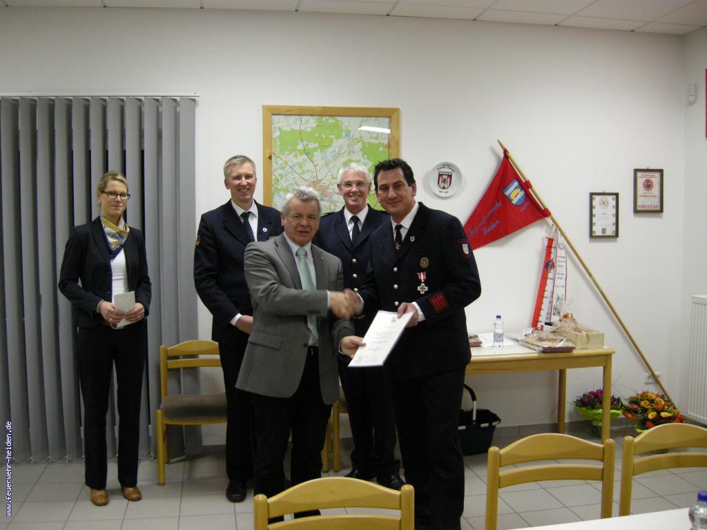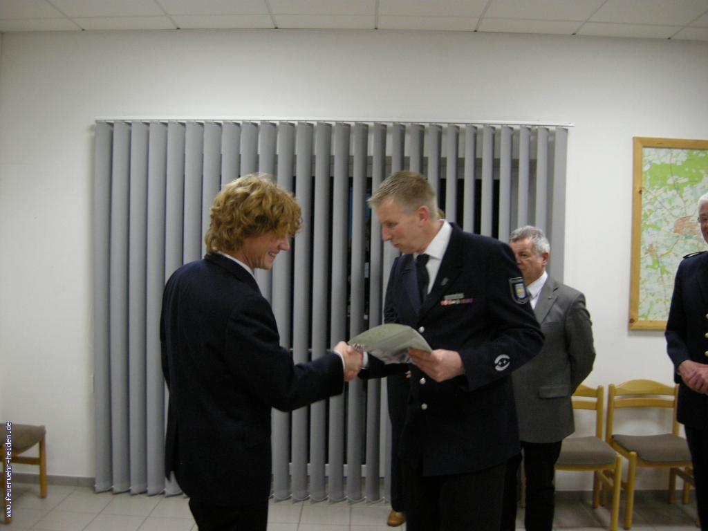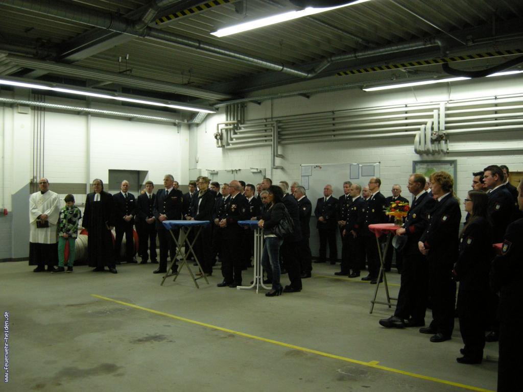 Nach der Einsegnung ging es dann mit der Jahreshauptversammlung weiter. Carsten Lohaus ließ zu Beginn das vergangene Jahr Revue passieren und stellte die Einsatzzahlen vor. So rückte die Feuerwehr Heiden in 2012 zu insgesamt 65 Einsätzen aus,wovon vier Einsätze auf Brand- und Sicherheitswachen entfielen. Herausragende Ereignisse dabei waren sicherlich zwei Wohnungbrände sowie der Brand eines Bauernhofes.