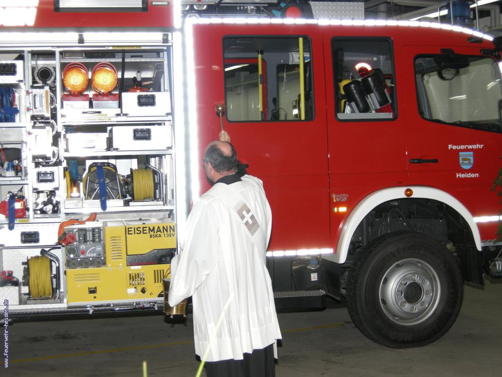 In seiner Ansprache dankte unser Leiter der Feuerwehr, Carsten Lohaus, vor allem der Projektgruppe bestehend aus Stefan Kreienkamp, Frank Prochnow, Maik Mertens und Dieter Wanders, welche für die Planung des neuen Feuerwehrfahrzeuges zuständig war. Sie waren es auch, die für die Beschulung aller Kameraden in den vergangenen Wochen verantwortlich waren, sodass nun jeder Heidener Feuerwehrmann auf dem neuen Fahrzeug eingewiesen ist.