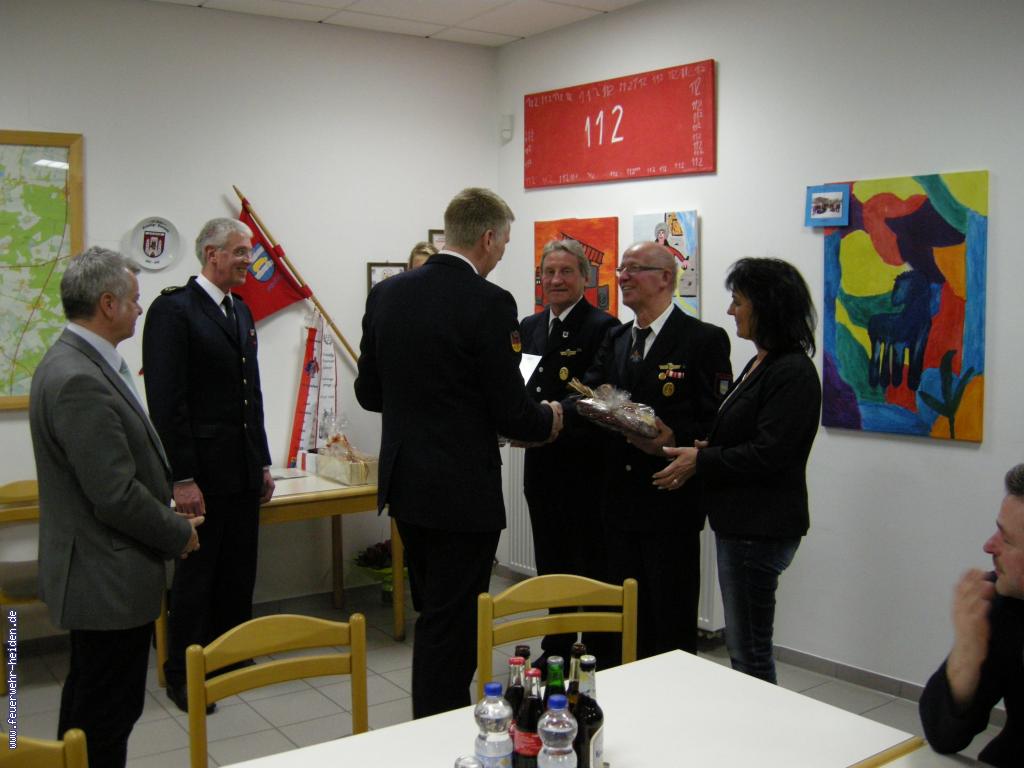Zwei unserer Kameraden wurden in diesem Jahr in die Ehrenabteilung versetzt. Anton Katemann und Reinhard Stender feierten im vergangenen Jahr ihren 60. Geburtstag und mussten somit altersbedingt den aktiven Dienst verlassen. Beide waren über einen langen Zeitraum feste Größen in der Heidener Wehr. Reinhard kann 36, Anton sogar über 43 Jahre aktiven Dienst bei der Feuerwehr vorweisen. Für ihren außerordentlichen Einsatz in den vergangen Jahren dankte Carsten Lohaus ihnen ausdrücklich.