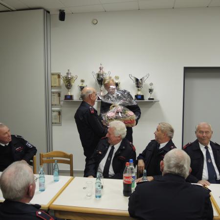 Unser Kamerad Hans- Jürgen Kotzian hatte in diesem Jahr das 60. Lebensjahr erreicht. Somit scheidet er automatisch aus dem aktiven Dienst aus und wird Mitglied der Ehrenabteilung. Auf 42 Jahre Dienstzeit kann Hans- Jürgen Kotzian zurückblicken. Auch ihm sprach Carsten seinen größten Dank aus. Während der ganzen Jahre wurde Hans- Jürgen wie auch unsere Wehr von seiner Frau Martina unterstützt, welche ebenfalls von Carsten einen Blumenstrauß zum Dank erhielt.