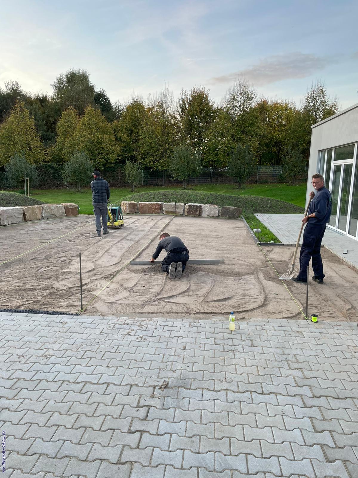 Da sich die Umbauarbeiten an unserem Gerätehaus langsam dem Ende nähern, standen auch an diesem Wochenende wieder Arbeiten an, die durch unsere Kameradinnen und Kameraden geleistet werden. Nachdem wir unseren alten Grillplatz wegen des Anbaus abreißen mussten, wurde von einer Arbeitsgruppe bereits ein neuer Außenbereich geplant. Für die Sitzecke wurde am Samstag der letzte Stein geschnitten und verlegt. Im Frühjahr geht es dann mit derBepflanzung des Walls weiter.